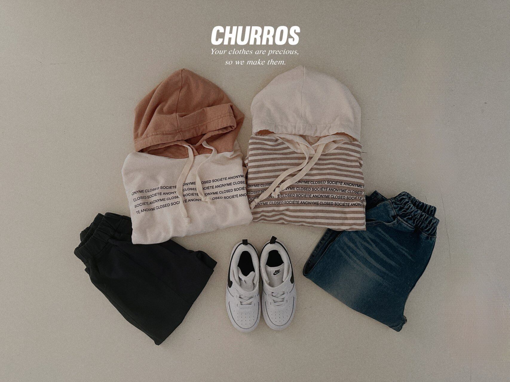 [即納] lettering color combination hoodie *churros